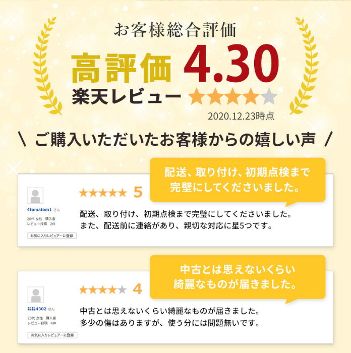 配送料金について 本商品は自社配送エリア内限定商品です:送料無料・設置&接続費用無料 自社配送エリア:東京・埼玉・千葉・神奈川(※一部エリアを除きます) 注意事項 ○ご購入後、弊社よりお電話またはメールでご連絡いたしますので必ずご確認ください。