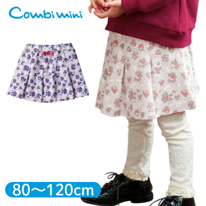 【35%OFF】《コンビミニ》プリーツスカート(フラワーレオパード) | 女の子 80cm 90cm 100cm 110cm 120cm 子供 子供服 ボトムス 服 キッズ ボトム 出産祝い スカート 保育園 おしゃれ かわいい 姉妹 おそろい ブランド 秋冬【S】【ボトムス】