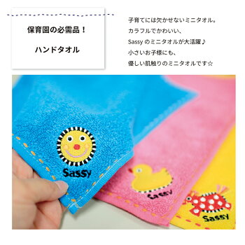 名入れ刺繍 無料 大人気 ハンドタオル 保育園◎ Sassy (サッシー) 名入れ おまとめ買い 綿100% 4色 25cm×25cm ホワイトデー お礼 お返し プチギフト 入園 入学 引っ越し 挨拶 おしゃれ シンプル メール便可