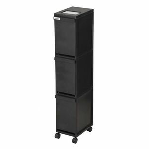サイズ約 幅20.5×奥行29.5×高さ105.5(cm)キャスターなしの場合:約 幅20.5×奥行28.5×高さ100.5(cm)材質本体他:ポロプロピレン キャスター:ポリプロピレン、ポリカーボネート、スチール容量約10L×3備考 【カラー】ブラック 【生産国】日本製 ■■その他■■※引き出し1段あたり耐荷重 1.5kg組立状態 組立品※キャスターなしでもご使用いただけますが床などを傷つける恐れがございます。