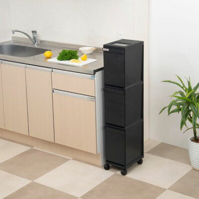 サイズ約 幅20.5×奥行29.5×高さ105.5(cm)キャスターなしの場合:約 幅20.5×奥行28.5×高さ100.5(cm)材質本体他:ポロプロピレン キャスター:ポリプロピレン、ポリカーボネート、スチール容量約10L×3備考 【カラー】ブラック 【生産国】日本製 ■■その他■■※引き出し1段あたり耐荷重 1.5kg組立状態 組立品※キャスターなしでもご使用いただけますが床などを傷つける恐れがございます。