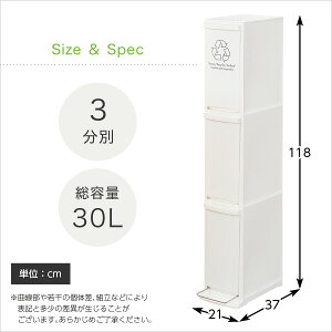 【商品について】縦型分別ダストボックス【Cocod-ココド-】(3段 スリム 省スペース フタ付き フットペダル ゴミ箱 30L)■サイズ:外寸:(約)21x37x118cm※商品重量:(約)4.3kg■カラー:ホワイト■素材:材質:ポリプロピレン■その他:・完成品でのお届けです。