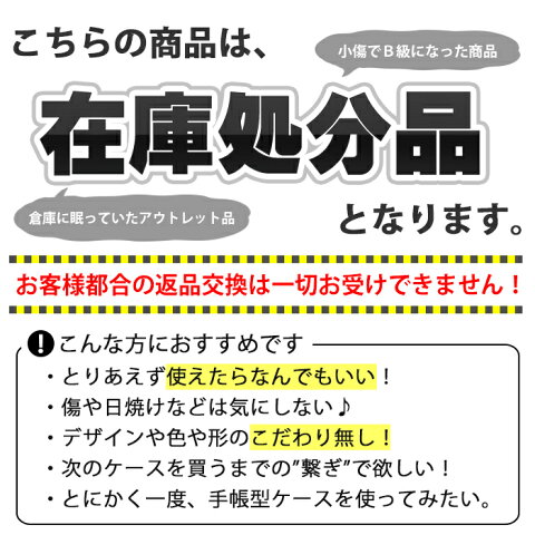タイプ: 手帳型(ベルトあり/ベルト無し) 生地素材: 合皮レザー(ポリウレタン) / 内部ケース: ハードケース(ポリカボネート) もしくは TPUケース(熱可塑性ポリウレタン樹脂エラストマー) 特徴・機能: 標準規格のカード収納が可能なカードポケット(カードホルダー) / ストラップホール 詳細: スマートフォンを全面保護し、落下による衝撃吸収(耐衝撃)が可能な薄型で軽量の携帯ケース 柄・デザイン: デザインプリント手帳やPUレザー手帳等のランダム形式のアウトレット・在庫処分品(訳あり商品) ※ご購入前によくある質問を必ずお読みになりご理解ご納得の上、ご購入お願い致します。